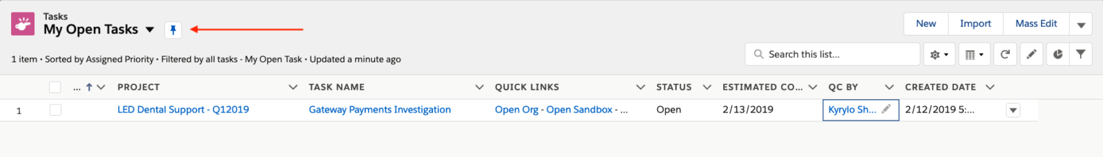 Set a default list view other than Recently Viewed! Simply click the pin icon next to the list view name to set it as your default view.